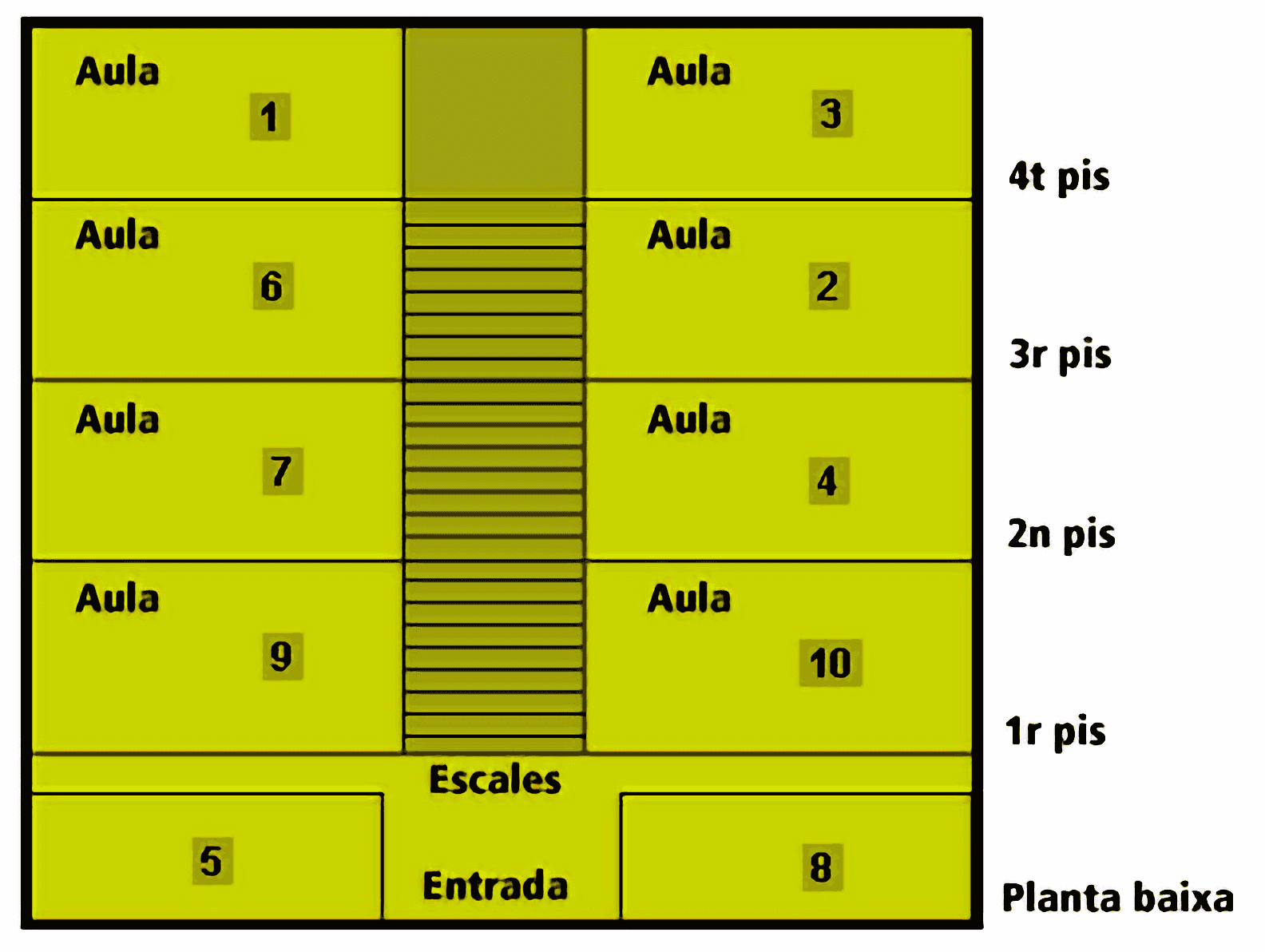 8. L'aula 1 és al tercer pis, pujant les escales a la dreta.